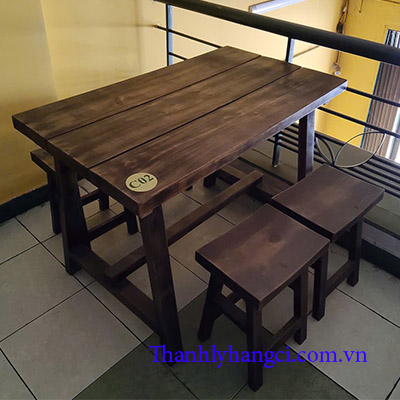 Bàn Ghế Quán Ăn Gỗ Dày Kích Thước 1,2m x 70cm( 4 Ghế + 1 Bàn)